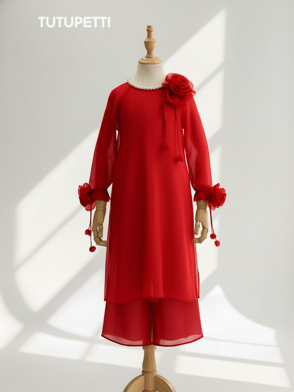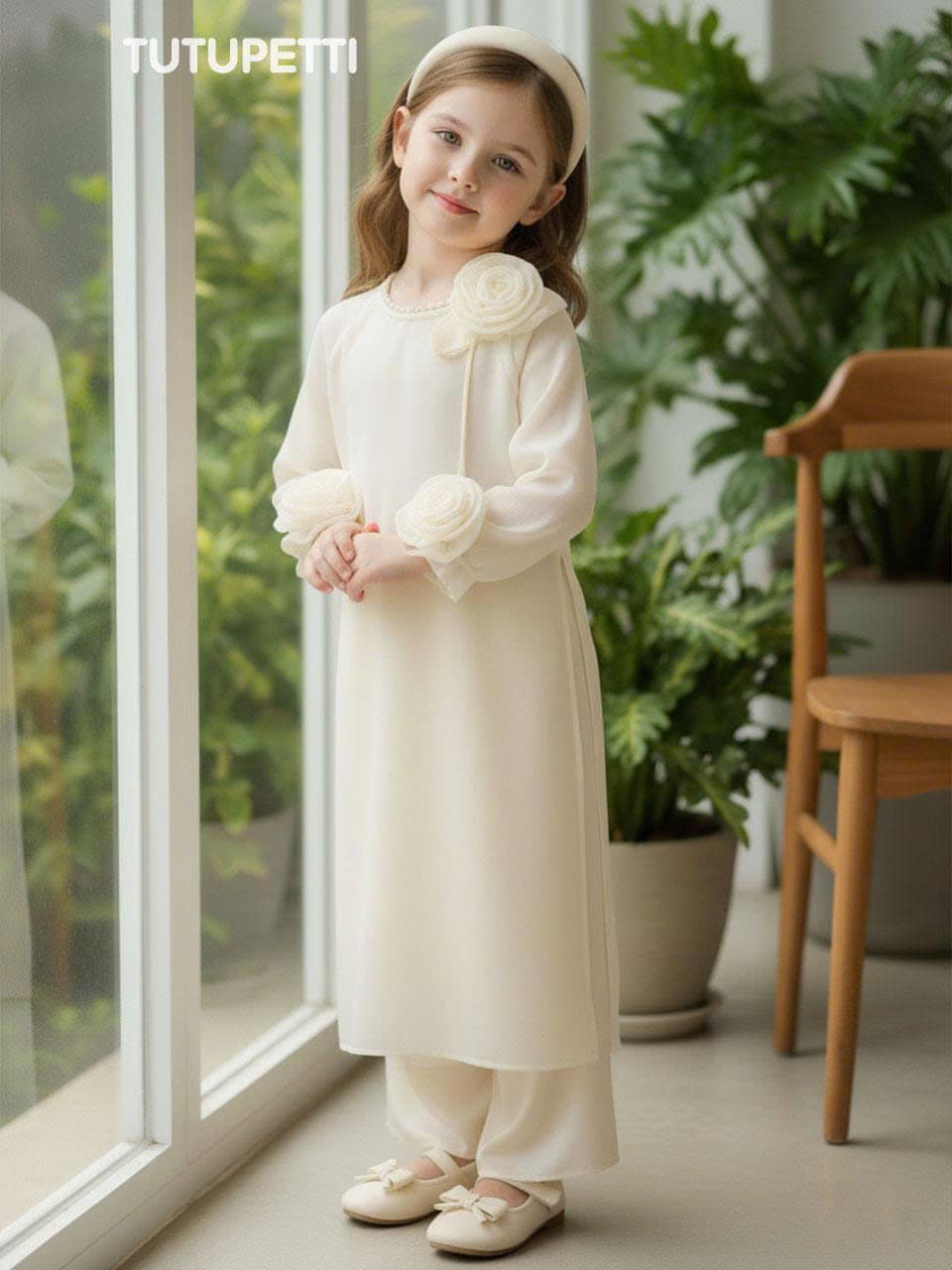 Hoa đính kết tỉ mỉ là điểm độc đáo của chiếc áo dài, tạo điểm nhấn nữ tính và duyên dáng. Hoa được thiết kế cầu kỳ, tinh tế, làm cho chiếc áo trở nên đặc biệt và xinh xắn. Áo Dài Cách Tân Đính Hoa Dễ Thương Cho Bé Gái không chỉ là biểu tượng của vẻ đẹp truyền thống mà còn là sự kết hợp tinh tế giữa phong cách hiện đại và bản sắc văn hóa, tôn vinh vẻ đẹp của truyền thống trong ngày lễ Tết.