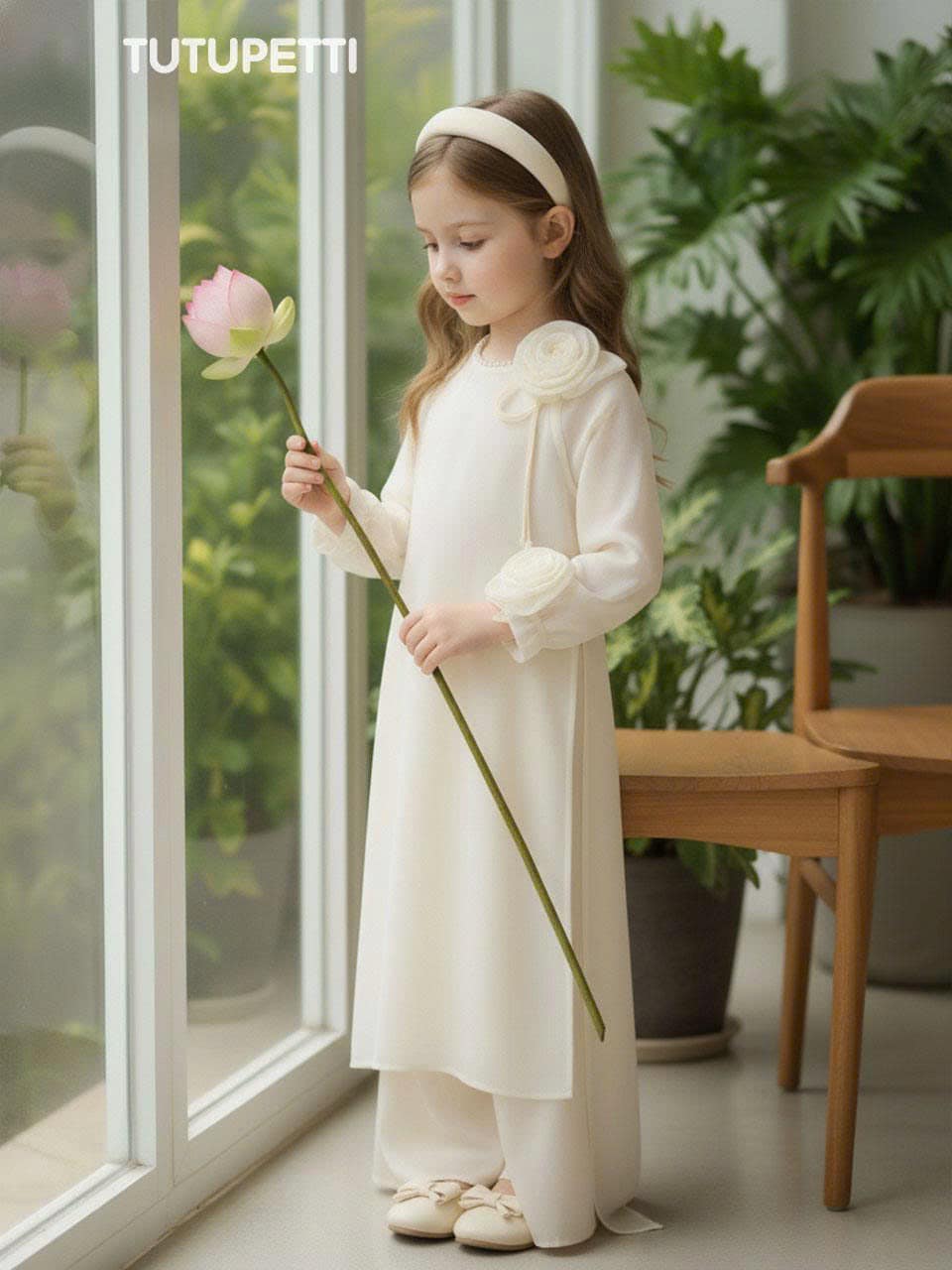 Thông tin chi tiết Áo Dài Cách Tân Đính Hoa Dễ Thương Cho Bé Gái