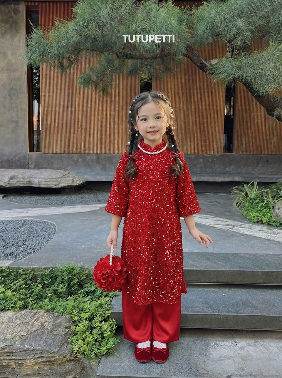 Vải nhung kim sa lấp lánh là điểm độc đáo của chiếc áo dài, tạo điểm nhấn nữ tính và duyên dáng. Được thiết kế cầu kỳ, tinh tế, làm cho chiếc áo trở nên đặc biệt và xinh xắn. Áo Dài Kim Sa Nhung Đỏ Cho Bé không chỉ là biểu tượng của vẻ đẹp truyền thống mà còn là sự kết hợp tinh tế giữa phong cách hiện đại và bản sắc văn hóa, tôn vinh vẻ đẹp của truyền thống trong ngày lễ Tết.